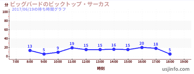 • ビッグバードのビックトップ・サーカス$B$N(B2017年06月19日の待ち時間