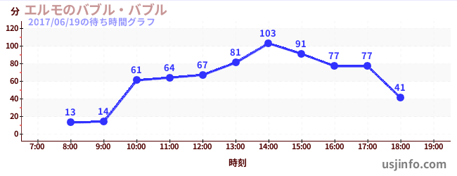 • エルモのバブル・バブル$B$N(B2017年06月19日の待ち時間