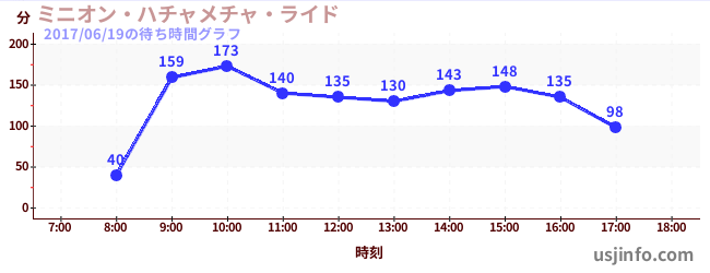 • ミニオン・ハチャメチャ・ライド$B$N(B2017年06月19日の待ち時間