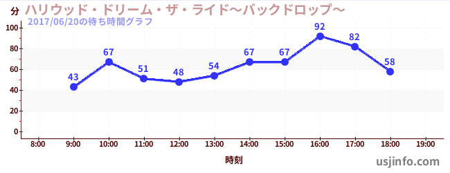 • ハリウッド・ドリーム・ザ・ライド〜バックドロップ〜$B$N(B2017年06月20日の待ち時間