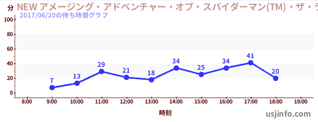 • NEW アメージング・アドベンチャー・オブ・スパイダーマン(TM)・ザ・ライド 4K3D$B$N(B2017年06月20日の待ち時間