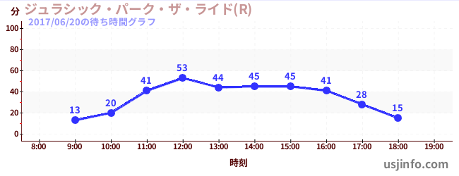 • ジュラシック・パーク・ザ・ライド(R)$B$N(B2017年06月20日の待ち時間