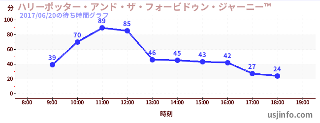 • ハリーポッター・アンド・ザ・フォービドゥン・ジャーニー™$B$N(B2017年06月20日の待ち時間
