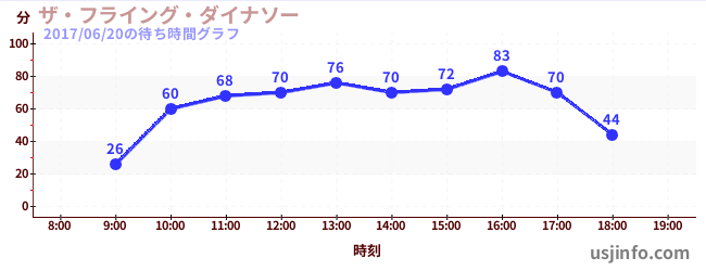 • ザ・フライング・ダイナソー$B$N(B2017年06月20日の待ち時間