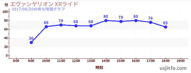 • エヴァンゲリオン XRライド$B$N(B2017年06月20日の待ち時間