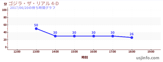 • ゴジラ・ザ・リアル 4-D$B$N(B2017年06月20日の待ち時間