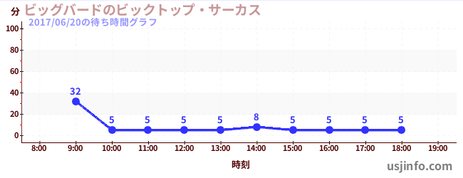 • ビッグバードのビックトップ・サーカス$B$N(B2017年06月20日の待ち時間