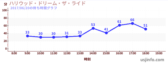 • ハリウッド・ドリーム・ザ・ライド$B$N(B2017年06月20日の待ち時間