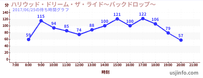 • ハリウッド・ドリーム・ザ・ライド〜バックドロップ〜$B$N(B2017年06月25日の待ち時間