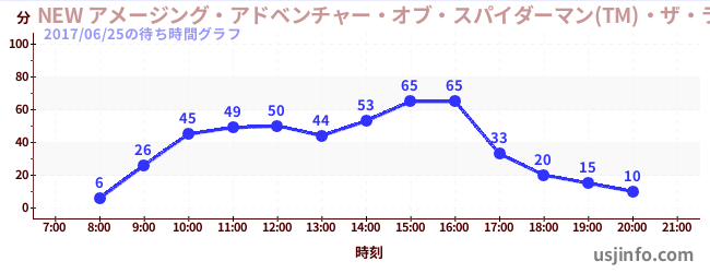 • NEW アメージング・アドベンチャー・オブ・スパイダーマン(TM)・ザ・ライド 4K3D$B$N(B2017年06月25日の待ち時間