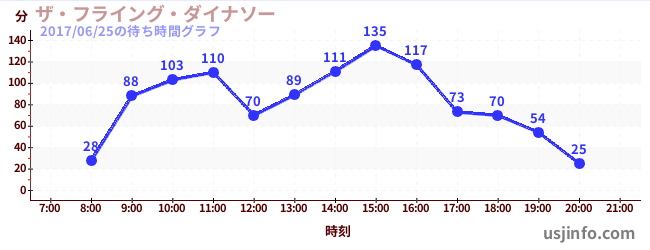• ザ・フライング・ダイナソー$B$N(B2017年06月25日の待ち時間