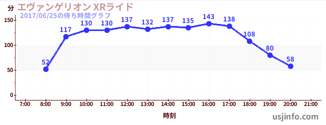 • エヴァンゲリオン XRライド$B$N(B2017年06月25日の待ち時間