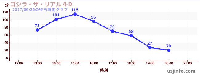 • ゴジラ・ザ・リアル 4-D$B$N(B2017年06月25日の待ち時間