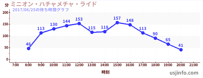 • ミニオン・ハチャメチャ・ライド$B$N(B2017年06月25日の待ち時間