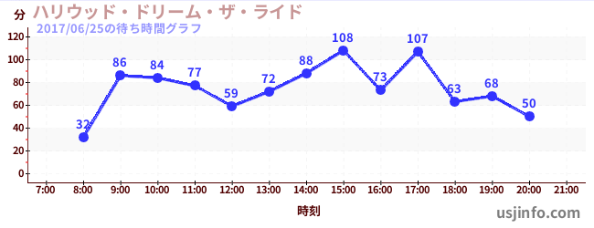 • ハリウッド・ドリーム・ザ・ライド$B$N(B2017年06月25日の待ち時間