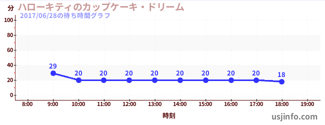 • ハローキティのカップケーキ・ドリーム$B$N(B2017年06月28日の待ち時間