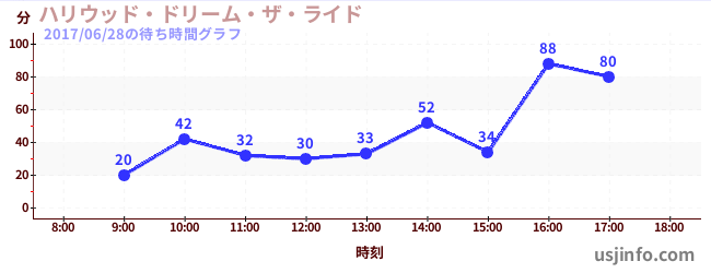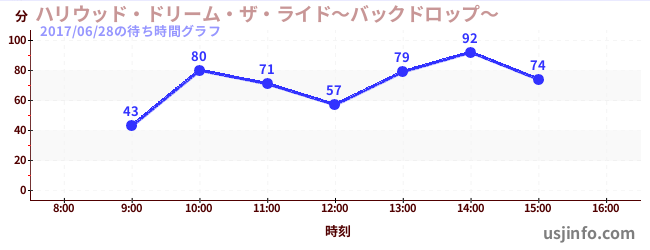 • ハリウッド・ドリーム・ザ・ライド$B$N(B2017年06月28日の待ち時間