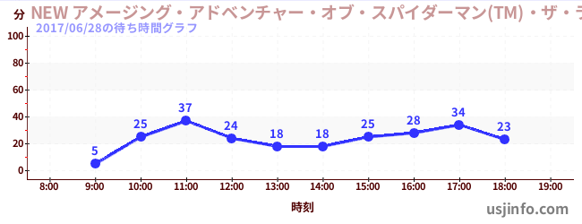 • NEW アメージング・アドベンチャー・オブ・スパイダーマン(TM)・ザ・ライド 4K3D$B$N(B2017年06月28日の待ち時間