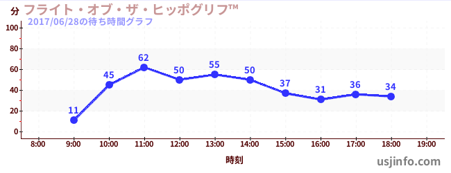 • フライト・オブ・ザ・ヒッポグリフ™$B$N(B2017年06月28日の待ち時間
