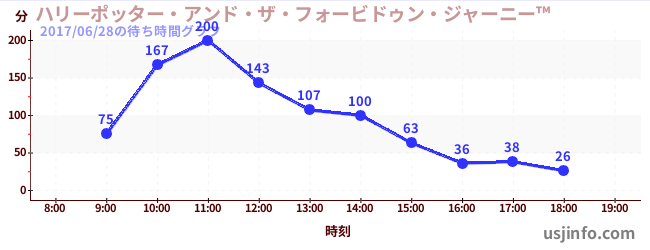 • ハリーポッター・アンド・ザ・フォービドゥン・ジャーニー™$B$N(B2017年06月28日の待ち時間