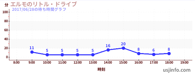 • エルモのリトル・ドライブ$B$N(B2017年06月28日の待ち時間