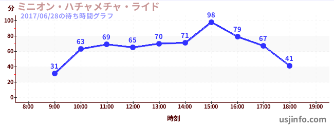 • ミニオン・ハチャメチャ・ライド$B$N(B2017年06月28日の待ち時間