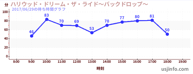 • ハリウッド・ドリーム・ザ・ライド〜バックドロップ〜$B$N(B2017年06月29日の待ち時間
