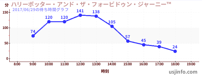 • ハリーポッター・アンド・ザ・フォービドゥン・ジャーニー™$B$N(B2017年06月29日の待ち時間