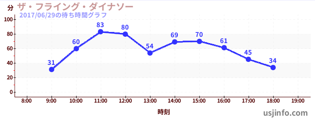 • ザ・フライング・ダイナソー$B$N(B2017年06月29日の待ち時間