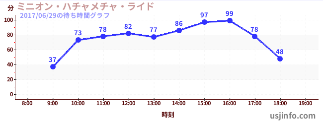 • ミニオン・ハチャメチャ・ライド$B$N(B2017年06月29日の待ち時間