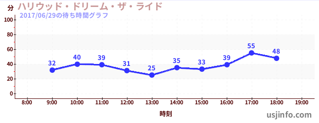 • ハリウッド・ドリーム・ザ・ライド$B$N(B2017年06月29日の待ち時間