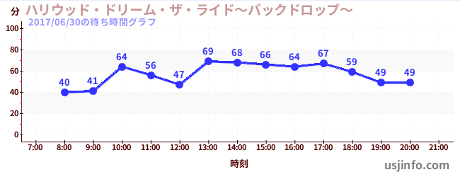 • ハリウッド・ドリーム・ザ・ライド〜バックドロップ〜$B$N(B2017年06月30日の待ち時間