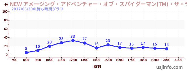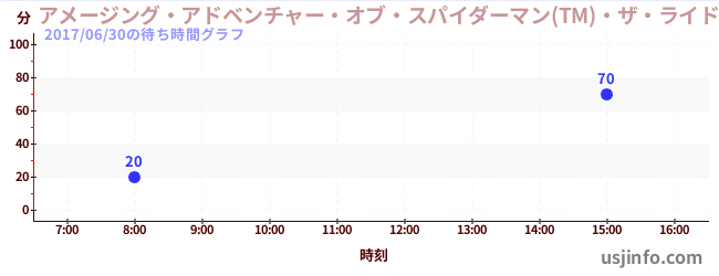 • アメージング・アドベンチャー・オブ・スパイダーマン(TM)・ザ・ライド$B$N(B2017年06月30日の待ち時間
