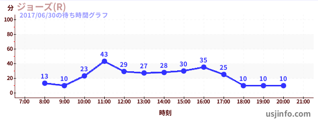 • ジョーズ(R)$B$N(B2017年06月30日の待ち時間