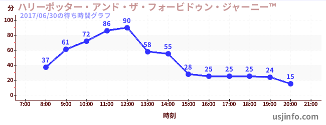• ハリーポッター・アンド・ザ・フォービドゥン・ジャーニー™$B$N(B2017年06月30日の待ち時間