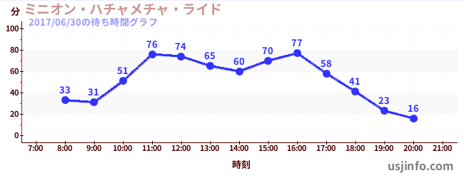 • ミニオン・ハチャメチャ・ライド$B$N(B2017年06月30日の待ち時間