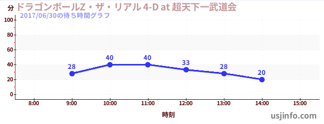 • ドラゴンボールZ・ザ・リアル 4-D at 超天下一武道会$B$N(B2017年06月30日の待ち時間