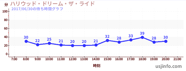 • ハリウッド・ドリーム・ザ・ライド$B$N(B2017年06月30日の待ち時間