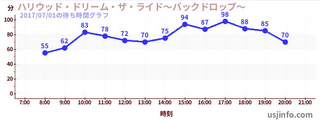 • ハリウッド・ドリーム・ザ・ライド〜バックドロップ〜$B$N(B2017年07月01日の待ち時間