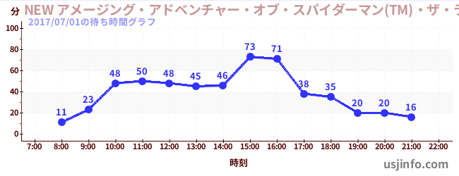 • NEW アメージング・アドベンチャー・オブ・スパイダーマン(TM)・ザ・ライド 4K3D$B$N(B2017年07月01日の待ち時間