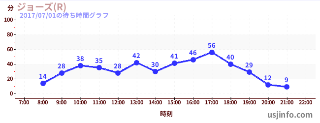 • ジョーズ(R)$B$N(B2017年07月01日の待ち時間
