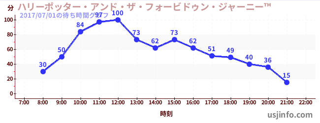• ハリーポッター・アンド・ザ・フォービドゥン・ジャーニー™$B$N(B2017年07月01日の待ち時間