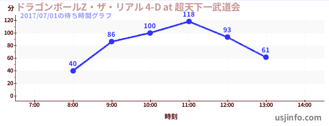 • ドラゴンボールZ・ザ・リアル 4-D at 超天下一武道会$B$N(B2017年07月01日の待ち時間