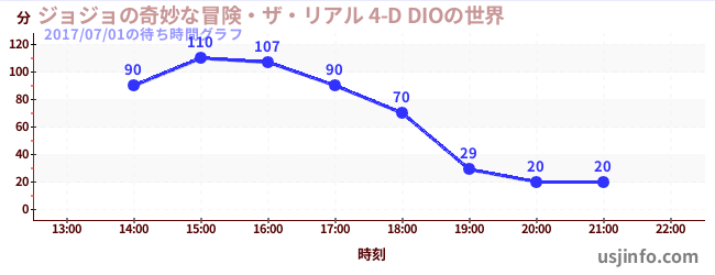 • ジョジョの奇妙な冒険・ザ・リアル 4-D DIOの世界$B$N(B2017年07月01日の待ち時間
