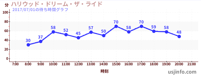 • ハリウッド・ドリーム・ザ・ライド$B$N(B2017年07月01日の待ち時間