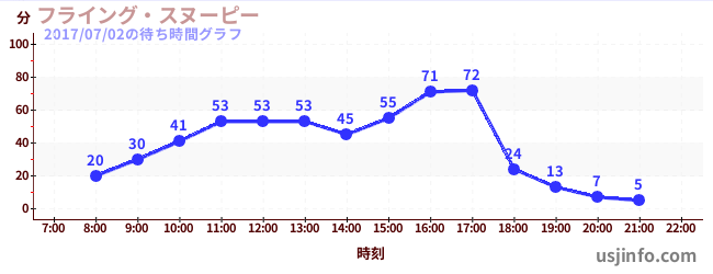 • フライング・スヌーピー$B$N(B2017年07月02日の待ち時間