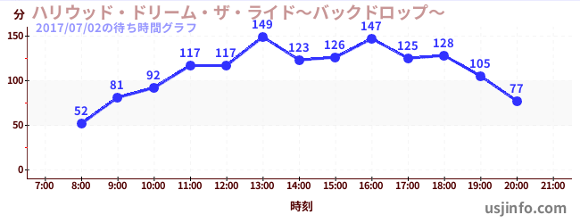 • ハリウッド・ドリーム・ザ・ライド〜バックドロップ〜$B$N(B2017年07月02日の待ち時間