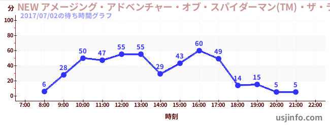 • NEW アメージング・アドベンチャー・オブ・スパイダーマン(TM)・ザ・ライド 4K3D$B$N(B2017年07月02日の待ち時間