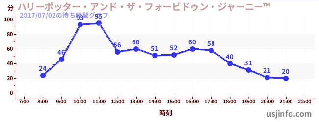 • ハリーポッター・アンド・ザ・フォービドゥン・ジャーニー™$B$N(B2017年07月02日の待ち時間