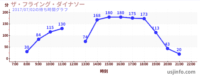 • ザ・フライング・ダイナソー$B$N(B2017年07月02日の待ち時間